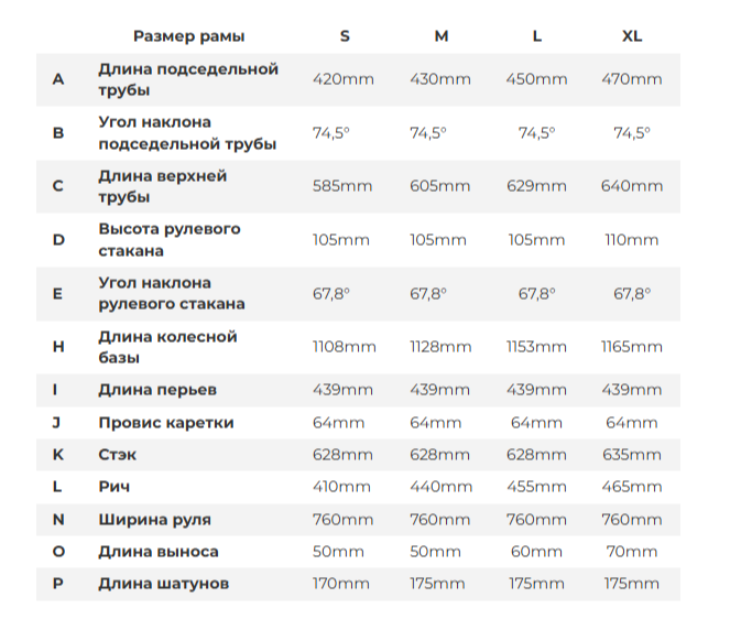 - Размеры рам: S подойдет на рост 155-170 см, M 165-180 см, L 175-190 см, XL 185-198 см