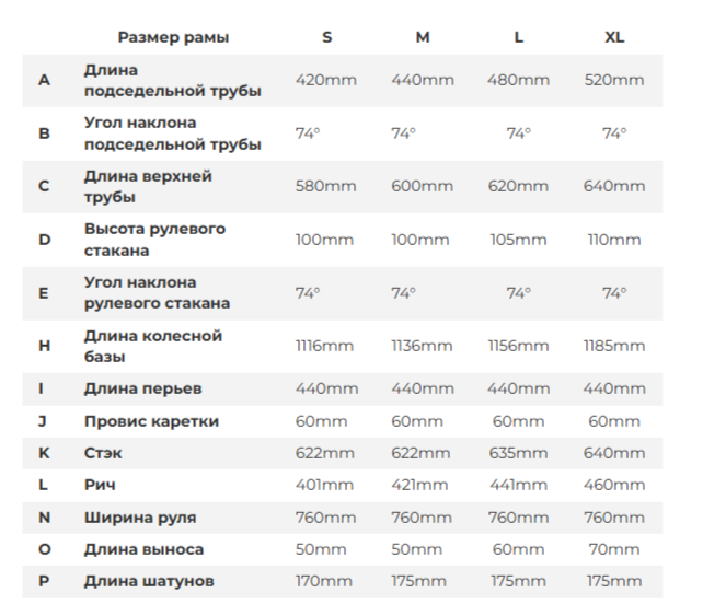 - Размеры рам: S подойдет на рост 156-170 см, M 168-178 см, L 178-188 см, XL 188-198 см
