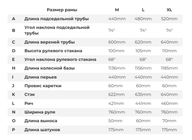 - Размеры рам: M подойдет на рост 168-178 см, L 178-188 см, XL 188-198 см