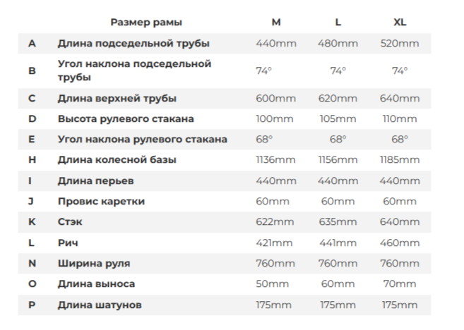 - Размеры рам: M подойдет на рост 168-178 см, L 178-188 см, XL 188-198 см